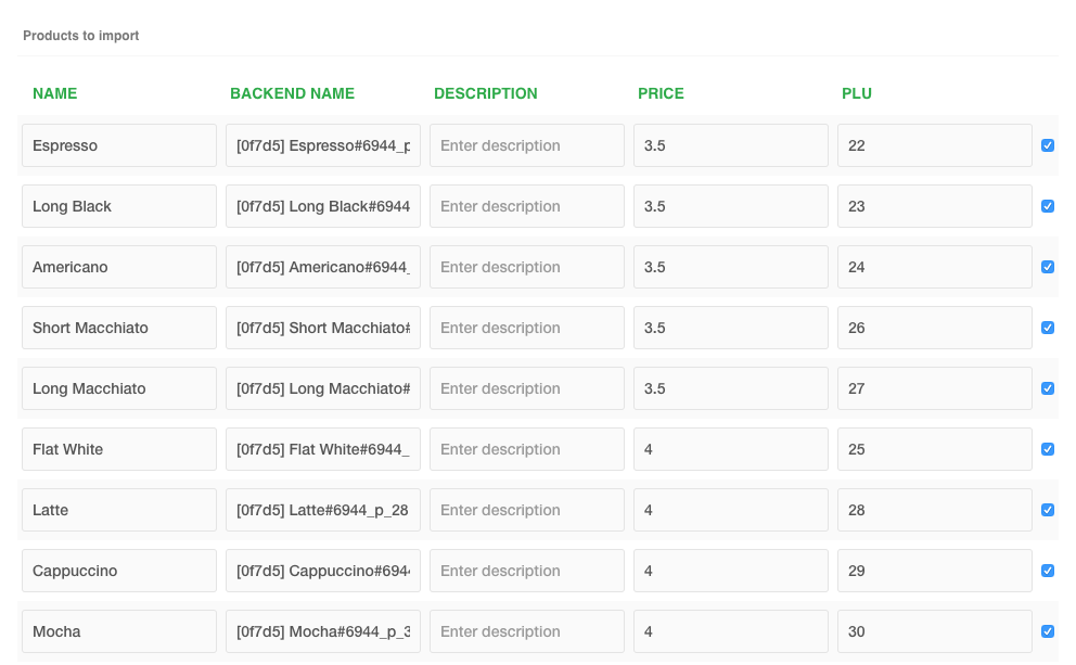 10. At this point you can manually un-flag items you do not want to import for your online ordering menu
