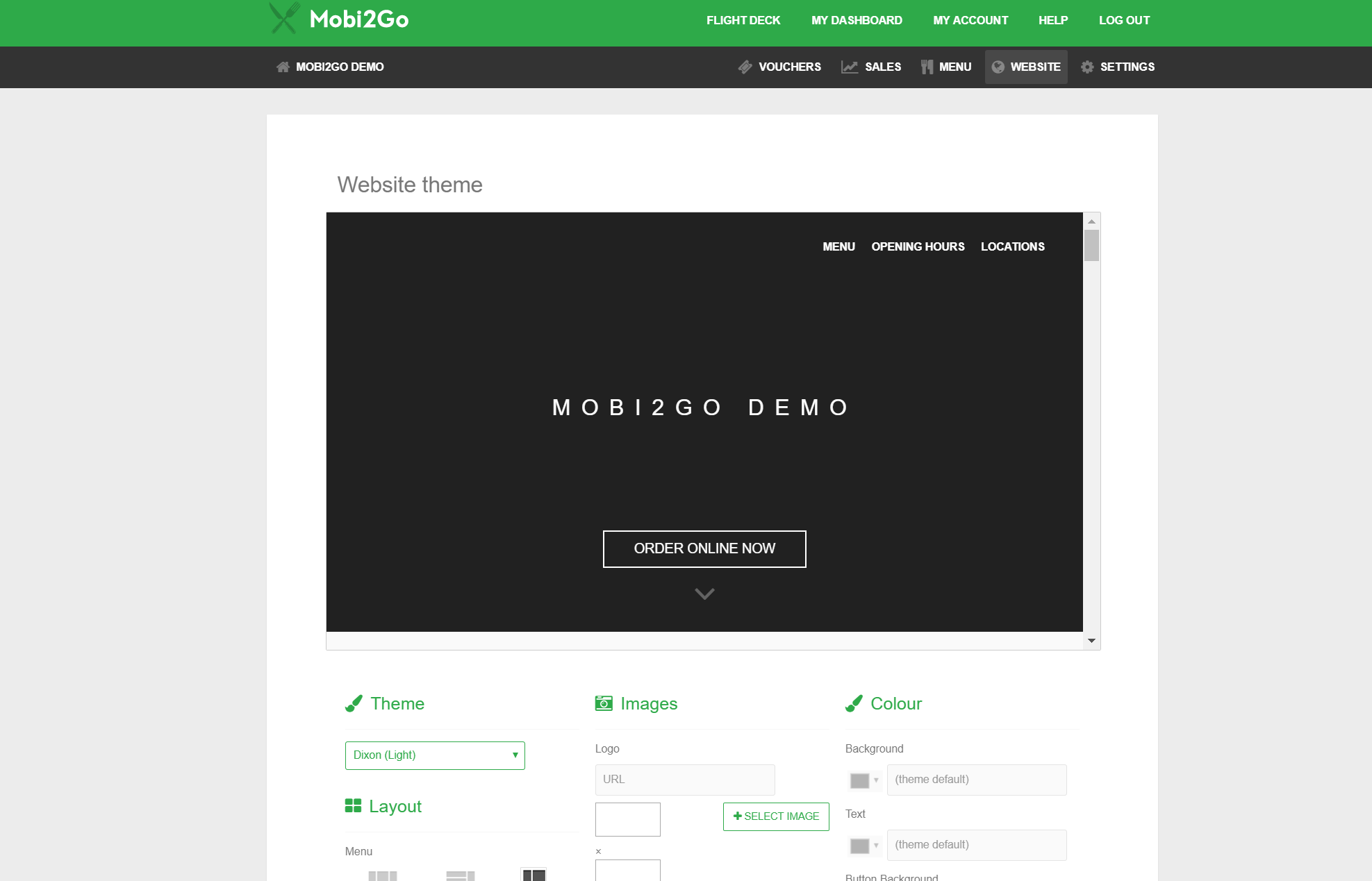 1. In Mobi2Go go to the Website settings by clicking WEBSITE from the grey navigational pane