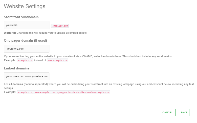 - Once you have setup your CNAME record you need to add your domain details into MOBI.