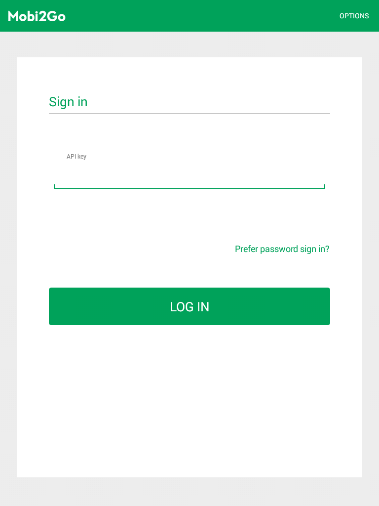 Q: How do I log in with my Mobi2Go API key?