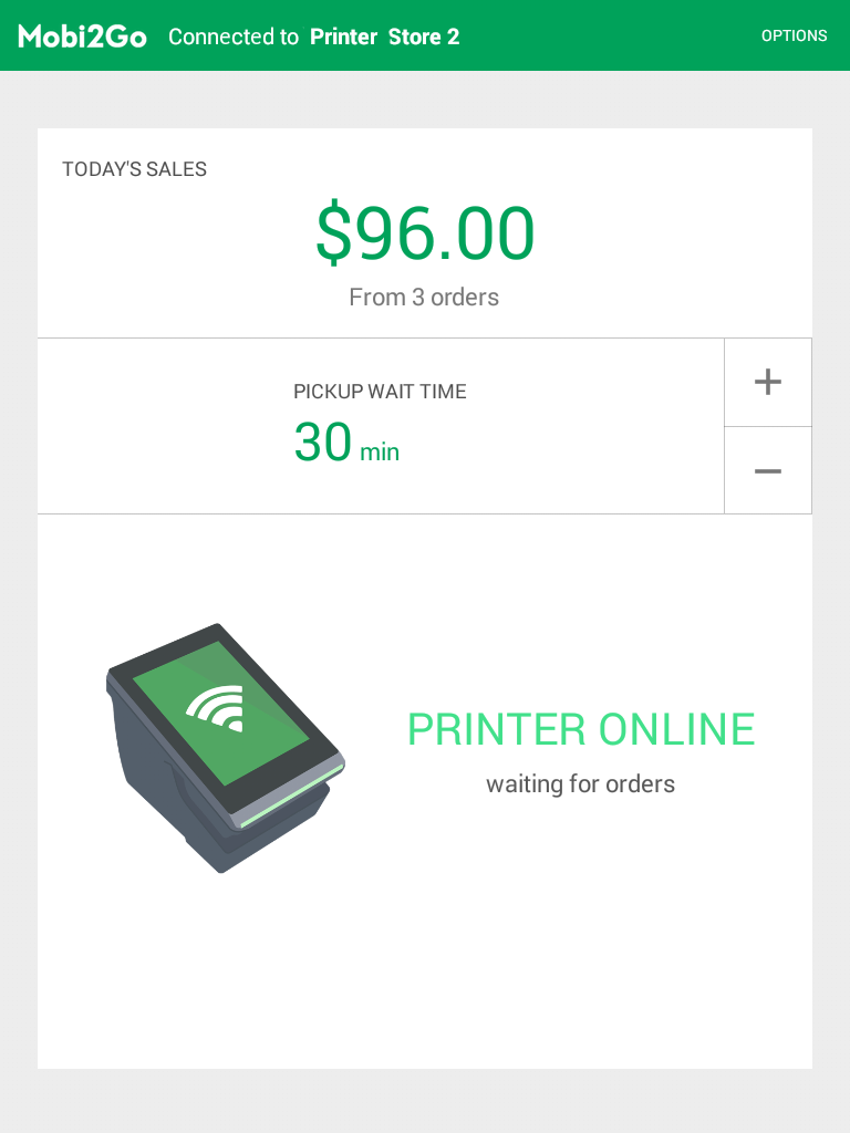 - The store has not been set to receive orders to the Printer. This can be checked by logging into your store on the Mobi2Go website. In the Settings page, scroll down to the Receiving Orders section. Click on Edit and ensure your store has been set to receive orders via the Mobi2Go Printer