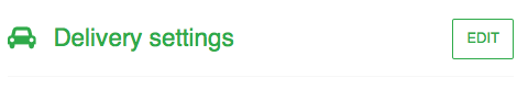 To setup your delivery zones for your store, proceed to the settings page and click the edit button on delivery settings. Find the prompt at the top of the page and click the link to setup your delivery zones.