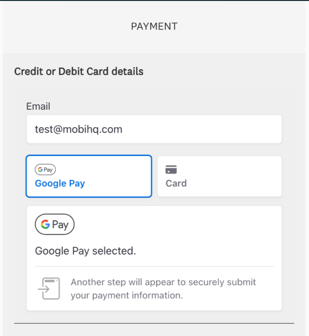 The new payment form may include Google Pay, Apple Pay, Stripe Link, and additional payment methods. If you do not see any of these enabled on your storefront, reach out to support@mobihq.com