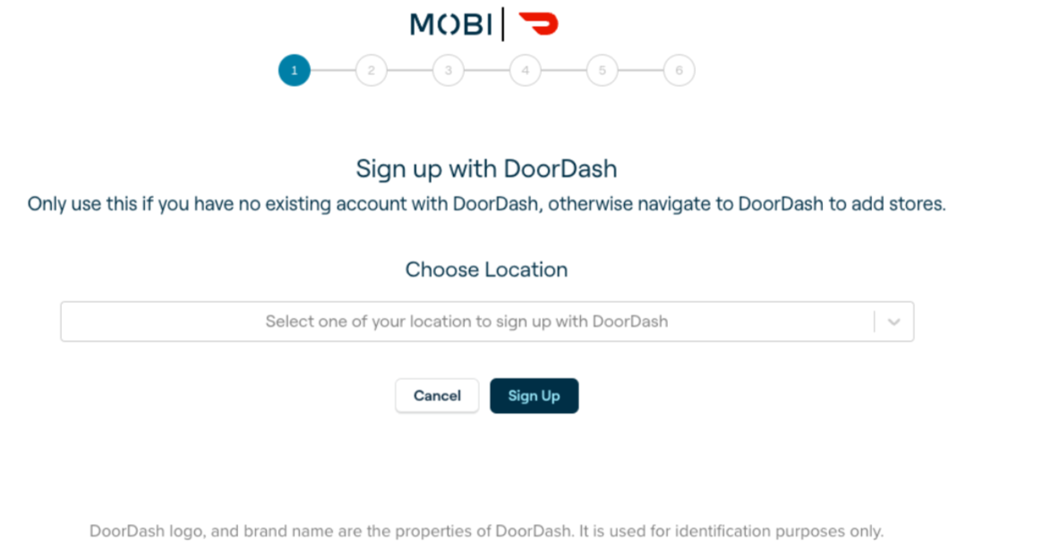 Click Login to DoorDash to continue the next phase. A new window will open for you to log in. Once completed, you’ll be redirected back to MOBI.