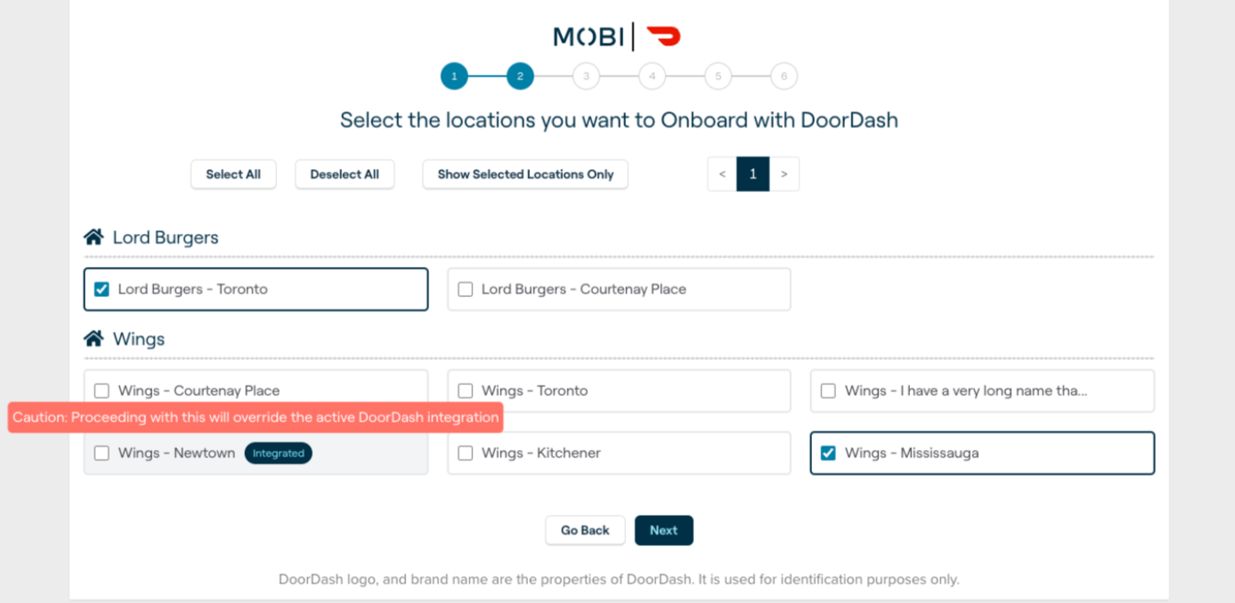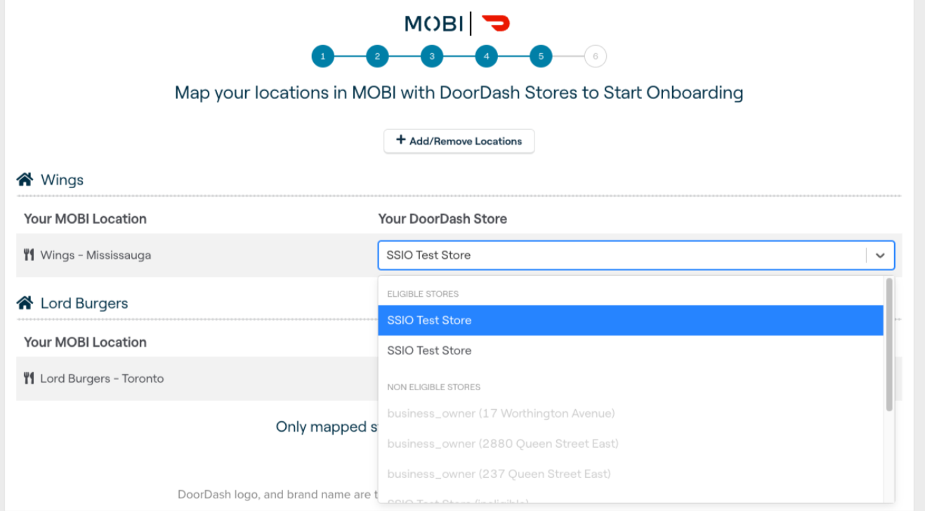 Choose the MOBI location you want created in DoorDash. Note that this can only be done for one location. For any new stores, you will need to create them in the DoorDash portal.