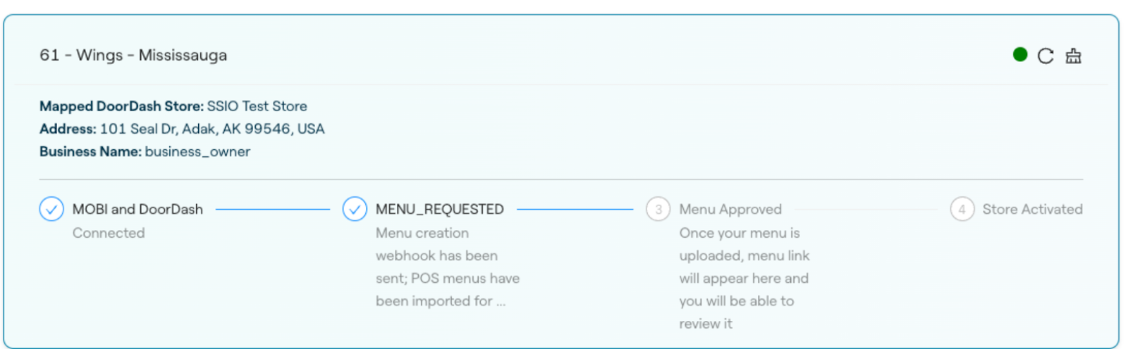 Great! You have successfully connected your location(s) in MOBI and DoorDash. Now you are going to trigger the “menu pull”, which means that DoorDash will get access to the MOBI menu you assigned in an earlier step.