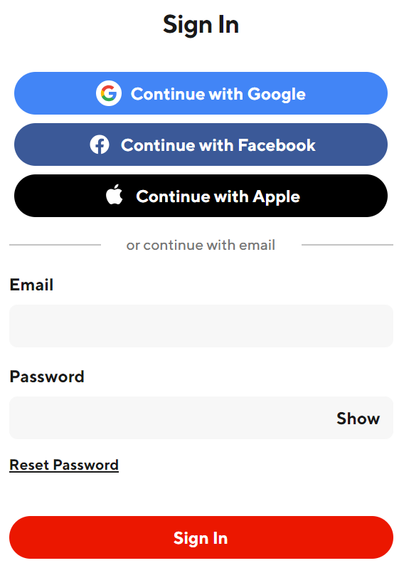 You will need to sign in, or if you do not yet have a DoorDash account, you can create one here, and then you will be redirected back to this flow on completion.
