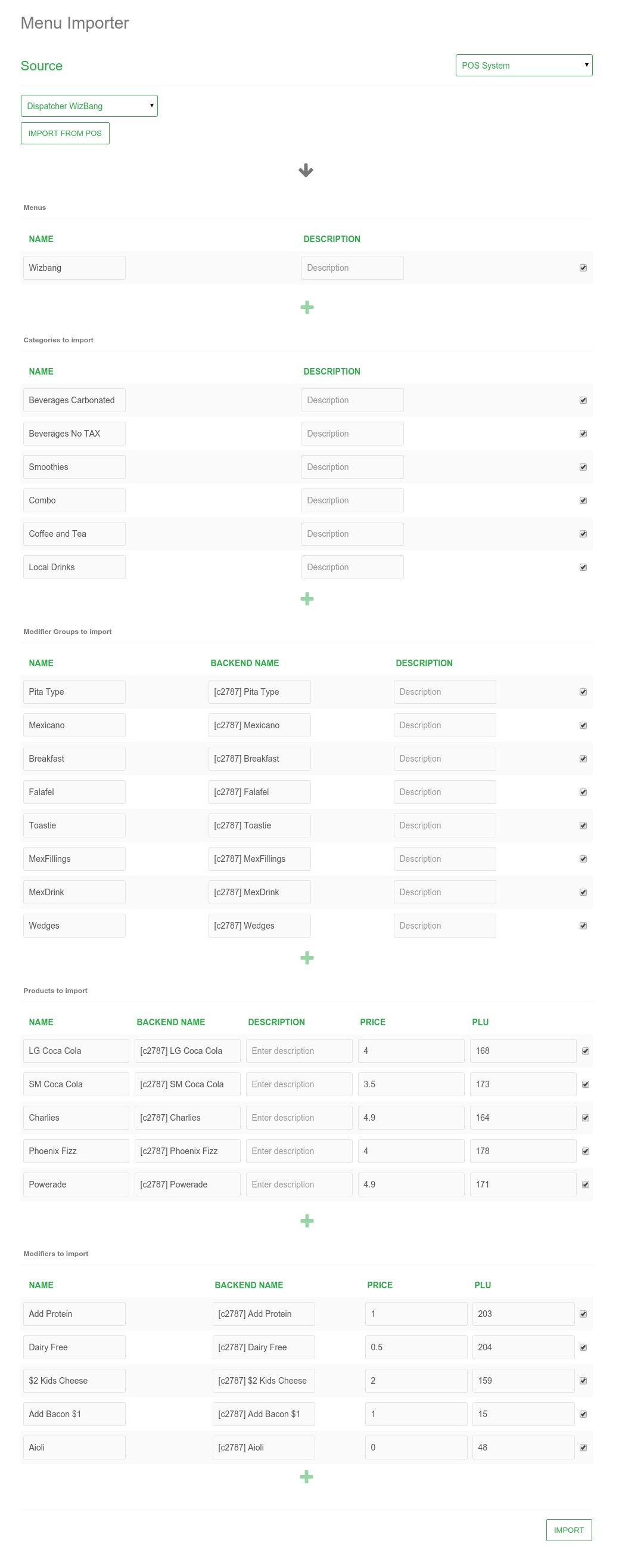 POS dispatchers like WizBang Onetap are setup at a Store level, not via a Head Office level. However to Import a Menu you will need to do so via Head Office level, as menu changes can only be completed at the Head Office level. If you are at a Store location & need a Menu Import, please contact your Company Administrator or feel free to contact our Support team.